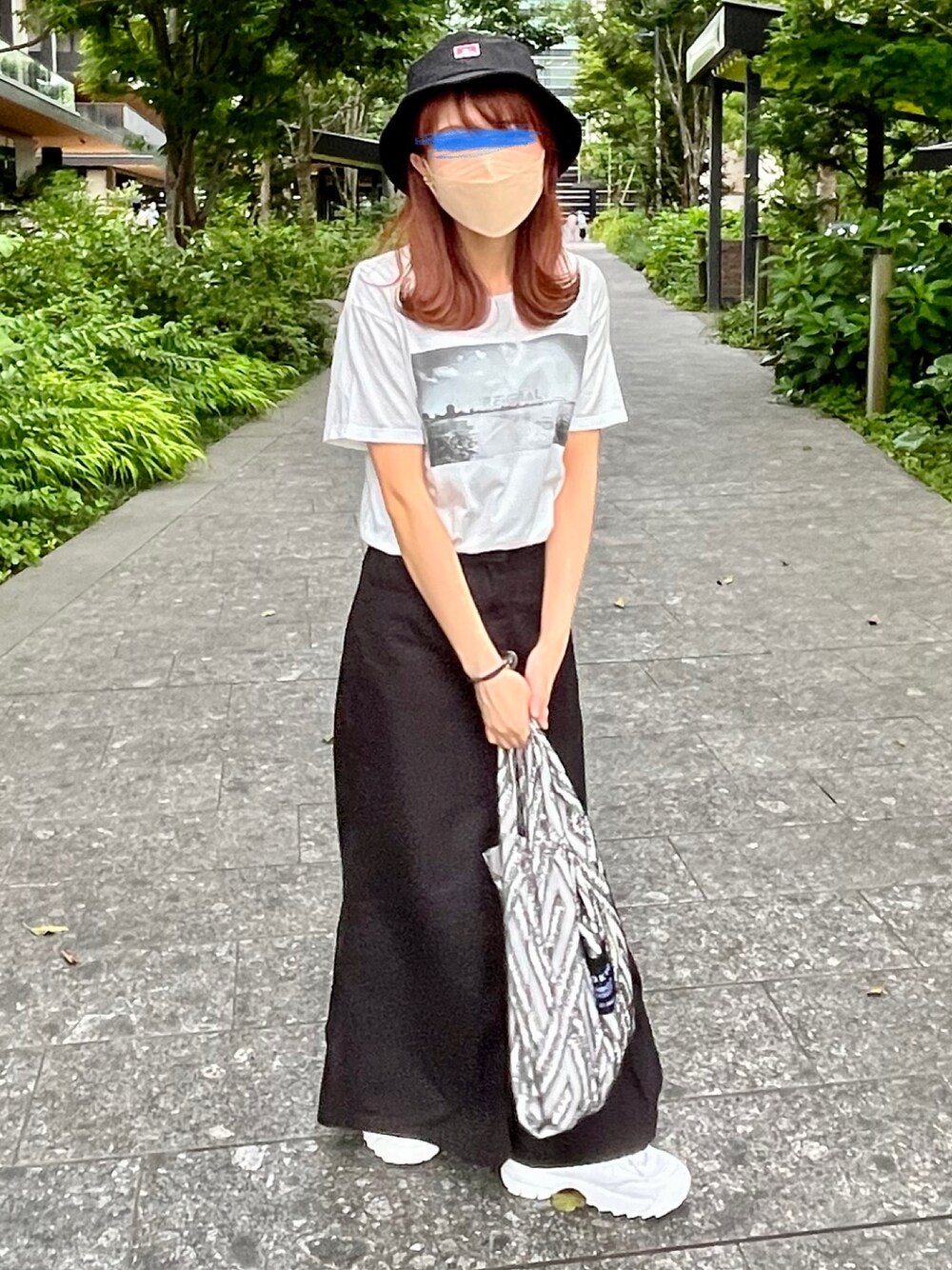 ピアスのゴールド以外、白と黒で合わせてモノトーンコーデにしました。