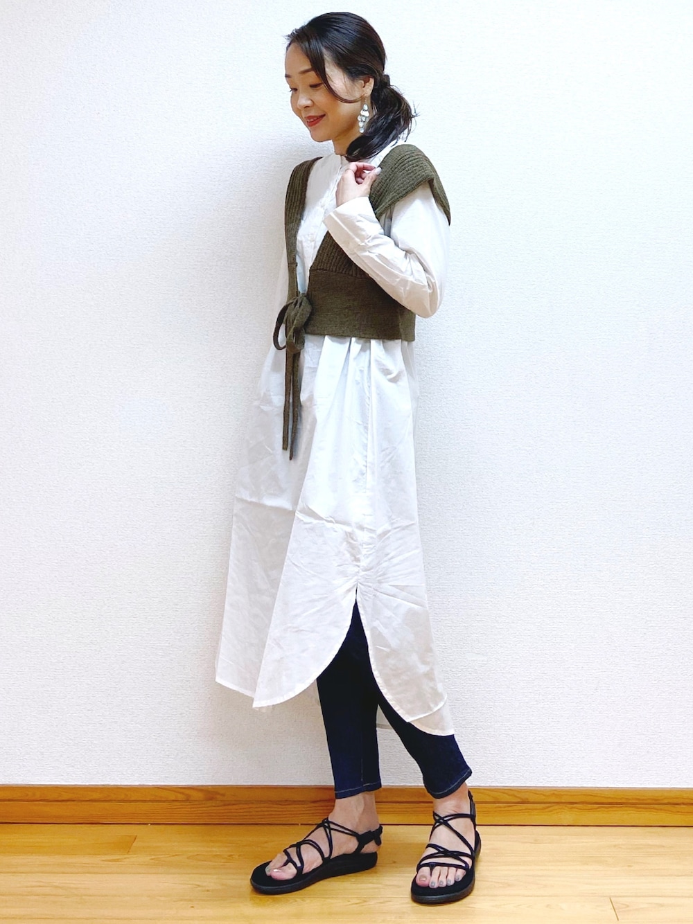mkmoririnのワンピース「切り替えクルーネックシャツワンピース」を使ったコーディネート