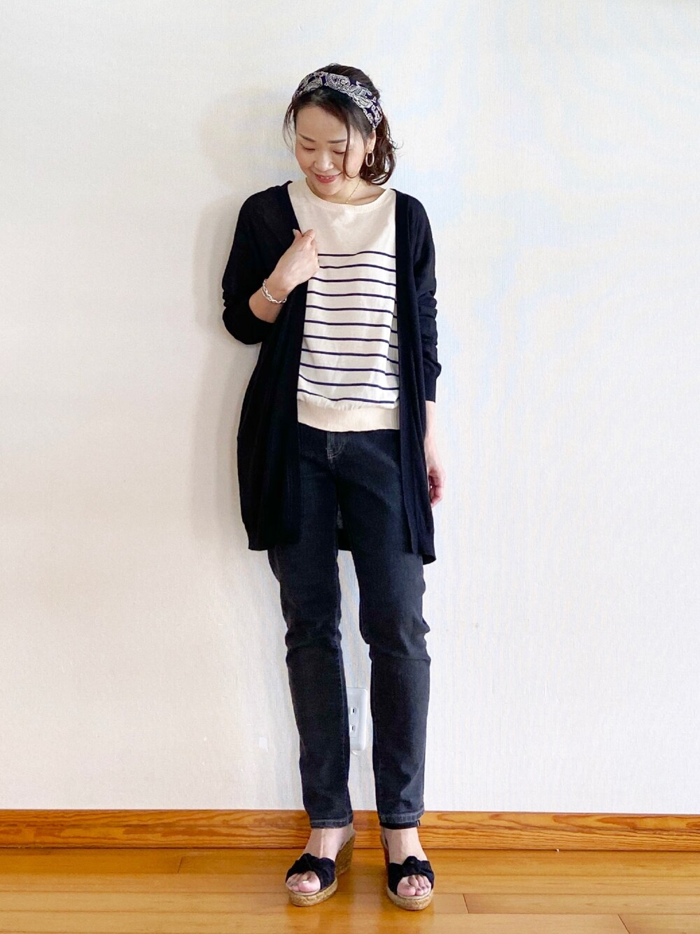 ボーダーにデニムは定番だけど、ブラックデニムに合わせるとぐっと大人っぽくなる気がする!