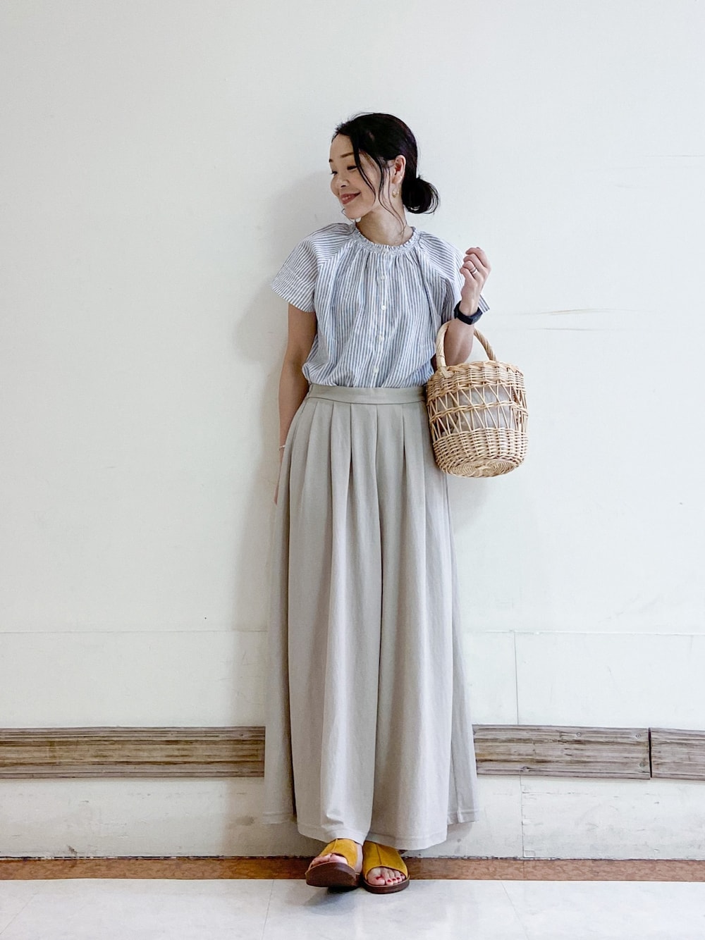 見た目も涼しい爽やかなコーディネート。 きれいめラインのスカーチョで大人ナチュラル♪