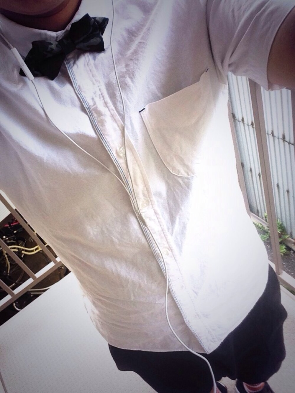 シャツ:coen パンツ:Hanjiro 靴下:UNIQLO 蝶ネクタイ:HANDMADE