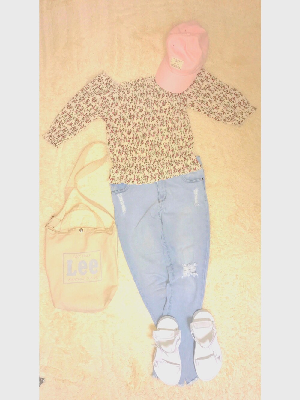 トップスは可愛い花柄オフショルに一目惚れ😍 値段も安く二の腕も隠れる長さで即買いでした! 探していた切りっぱなしのデニムをGET! 色も気に入りました👍🏻 スポサンはなんと500円でこれもまた即買い! 黒い方も買おっかな〜 夏のコーデにどんどん取り入れていけそうなアイテムでいい買い物〜💗