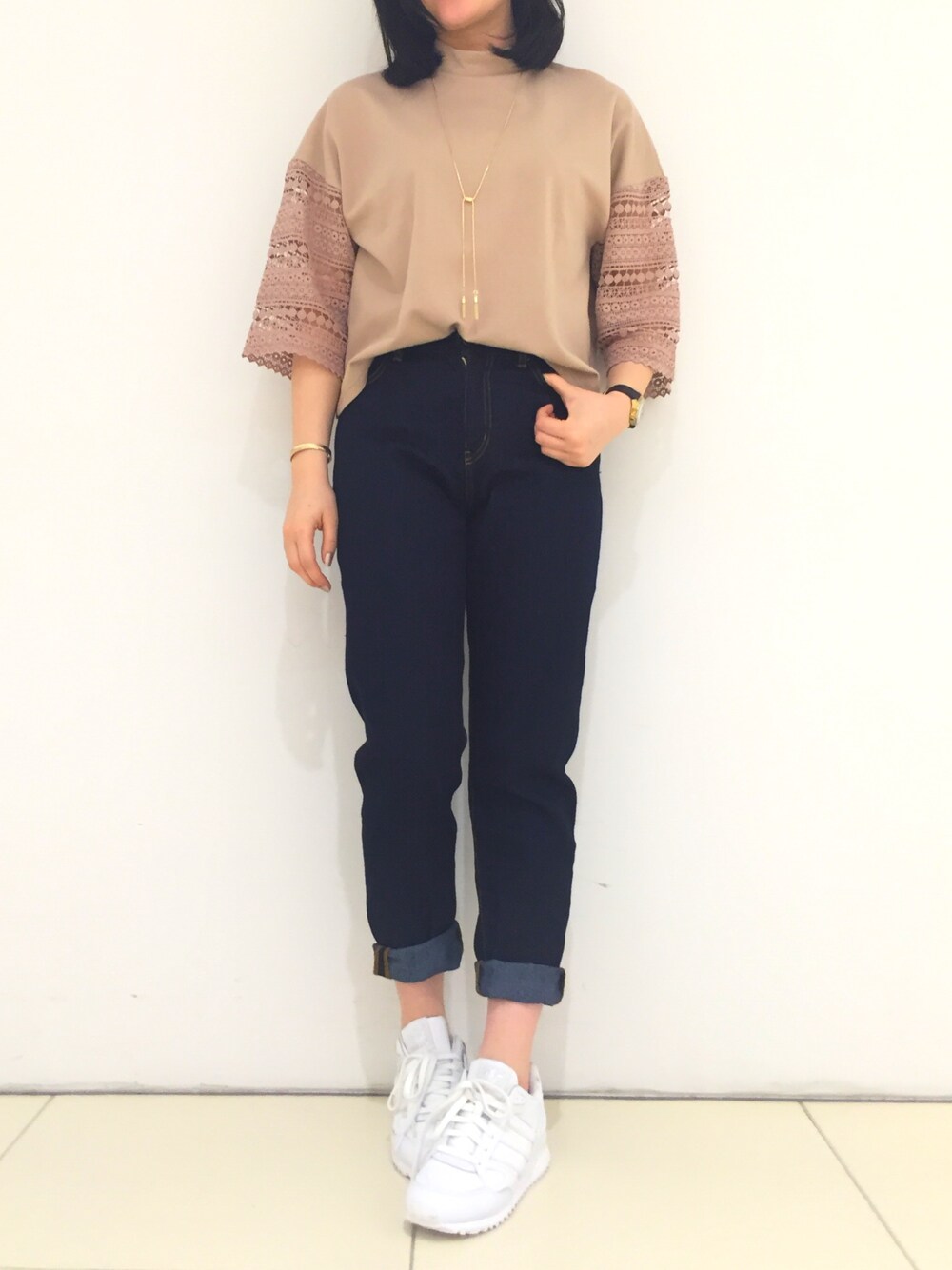 MOMOのデニムパンツ「リネンデニムテーパードパンツ/718097」を使ったコーディネート