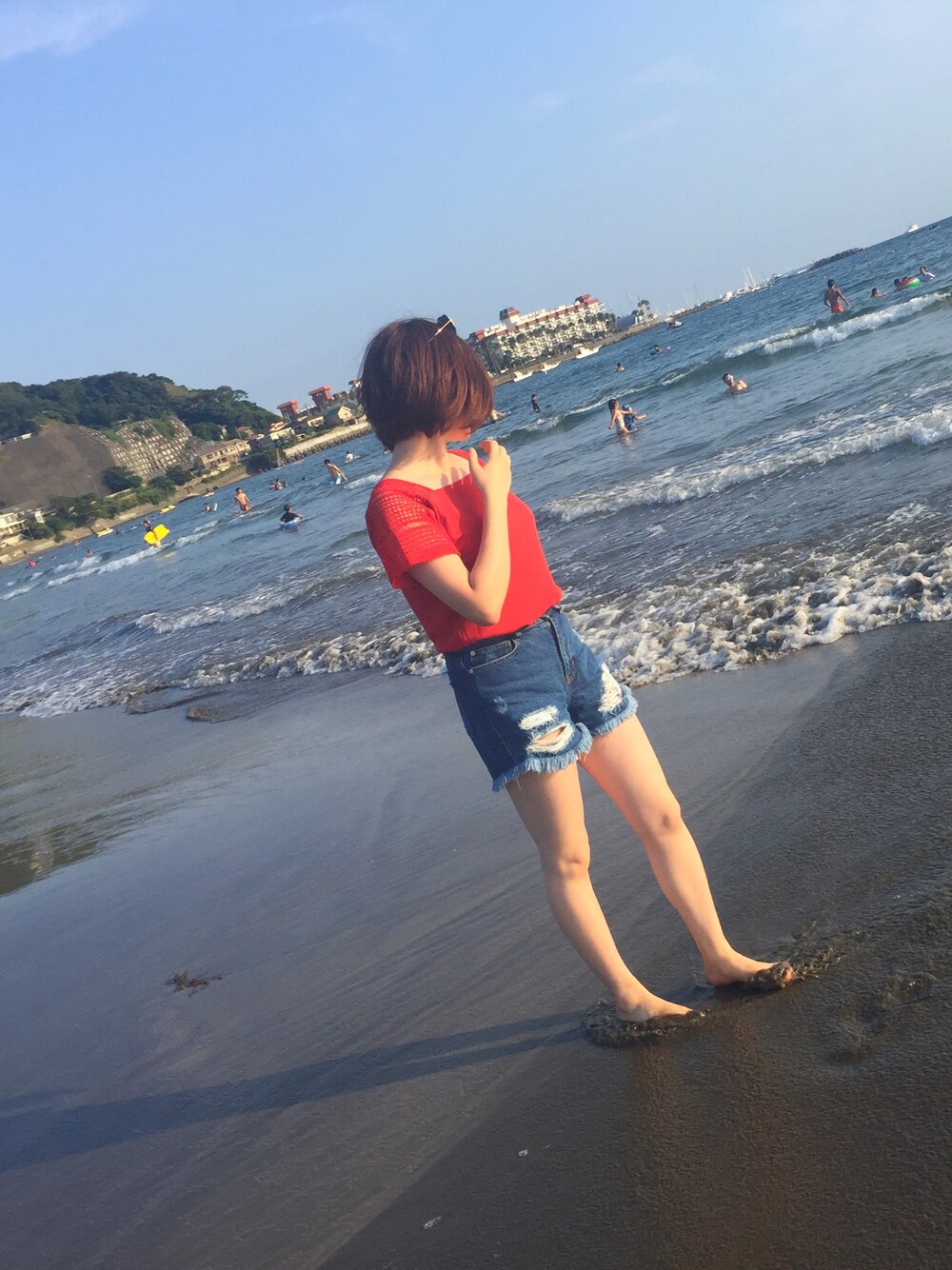 アパレルの同期4人で鎌倉の海へ行きました🏖🐚 ドレスコードは 赤トップス×デニム×ハートのサングラス❤️❤️ 赤集団でキャーキャーしてきました😆⛵️