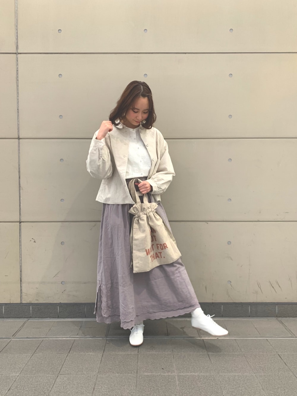 やまもとのエコバッグ/サブバッグ「綿麻ロゴ巾着バッグ」を使ったコーディネート