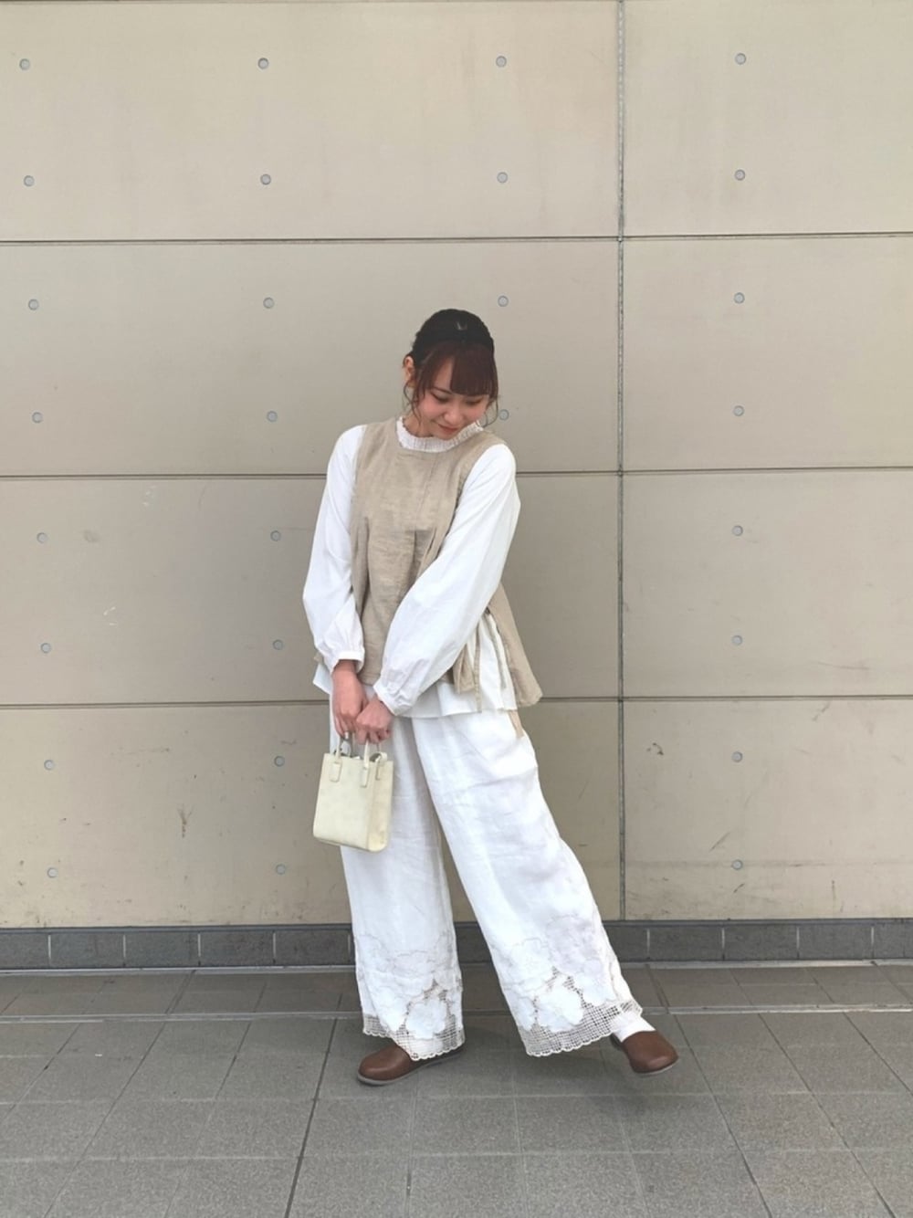 ご覧いただきありがとうございます🌼 TSUHARUのレースが繊細で素敵なパンツでのコーディネートです🤍 裾にあしらわれているレースは程よい透け感で春らしくなっています🌷 ベストにはリボンがついているのでカジュアルになりすぎずに着ていただけます🥳 横浜ポルタ店では明日からノベルティフェアが始まります! 数に限りがありますのでぜひお早めに店舗までお越しください◎
