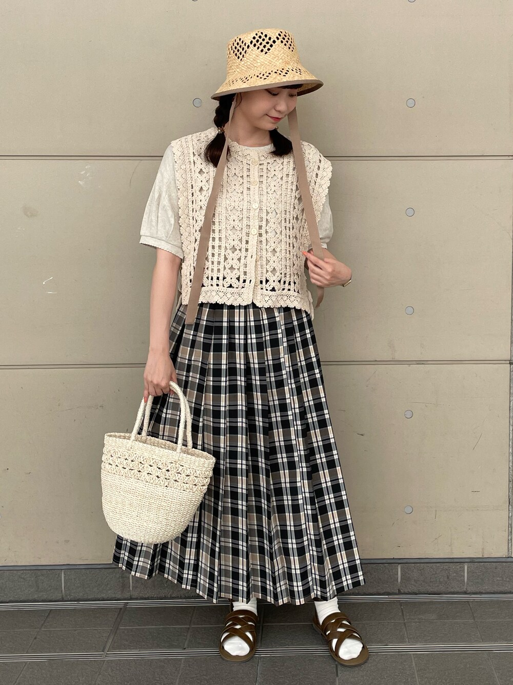 やまもとのハット「リボンテープ付透かしバケットハット」を使ったコーディネート