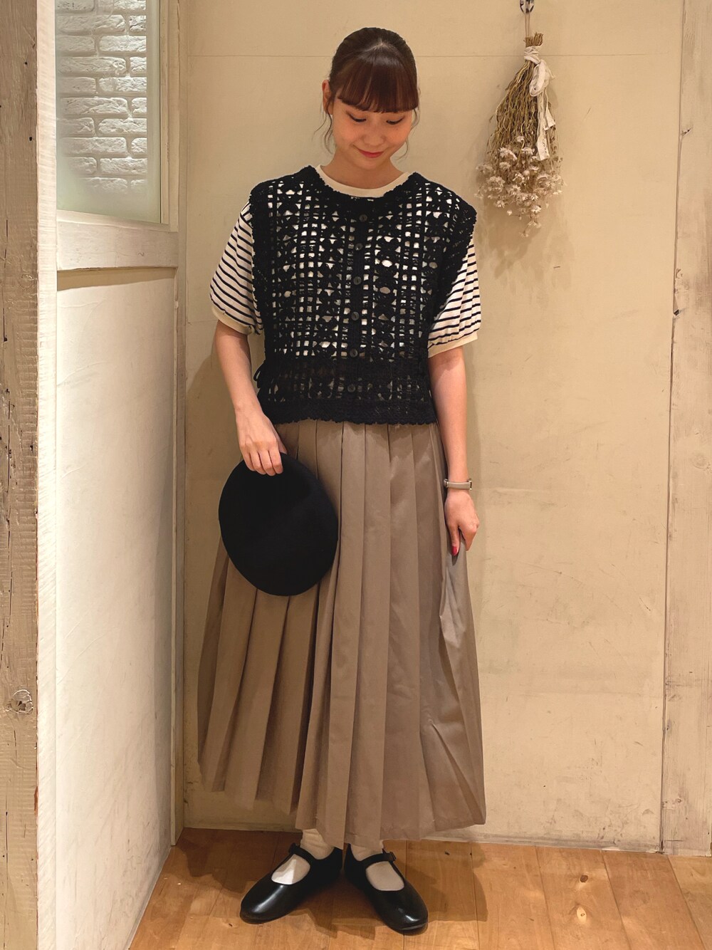 やまもとのTシャツ/カットソー「ボーダー/花プリント半袖Tシャツ」を使ったコーディネート