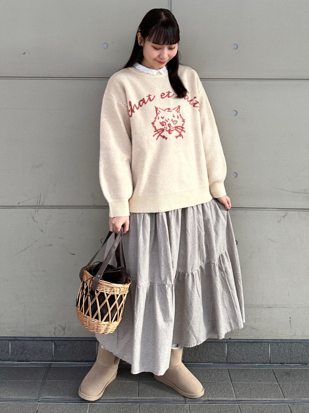 やまもとのニット/セーター「アニマルモチーフジャカードニット」を使ったコーディネート