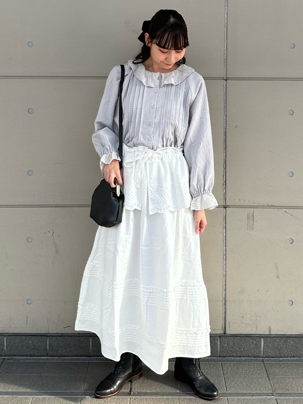 やまもとのシャツ/ブラウス「ウエハースピンタックブラウス」を使ったコーディネート