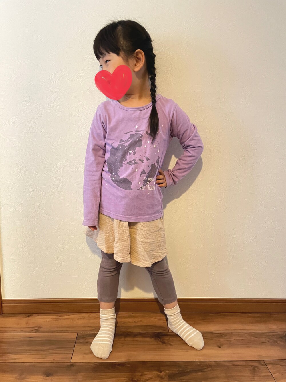 今日のトップスも、甥っ子お下がり服コーデ(笑) どんだけ毎日お下がり(笑) でもこれは紫&星柄ってことで、本人お気に入り⭐︎ 本当はインして着せたかったけど、却下されました。 5m5m▶︎109cm、20kg