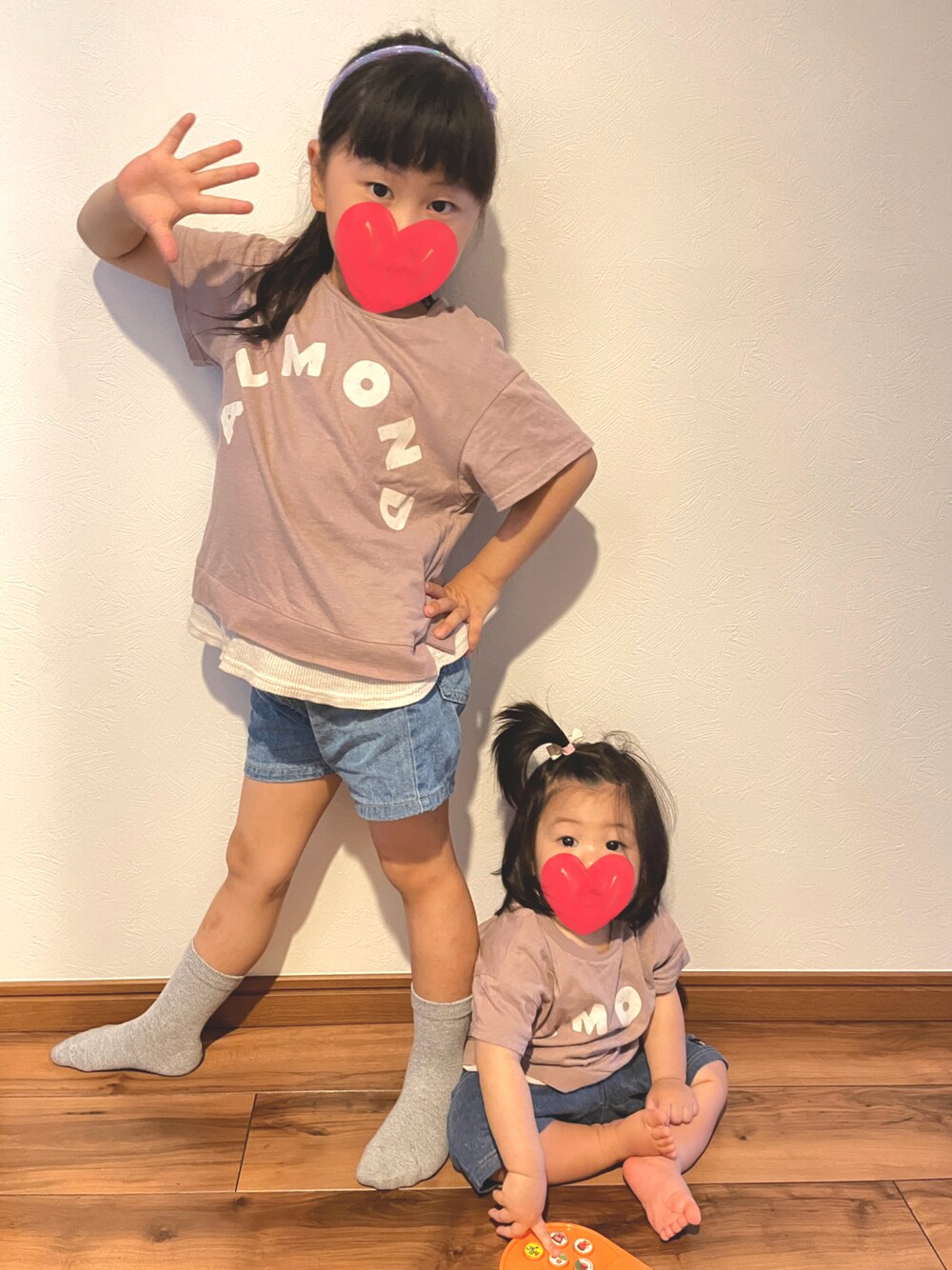 夏用にデニムショートパンツを購入。 後ろポッケにリボンが付いてて、とってもキュートでお気に入り☺︎ おチビはお下がりのDouble.Bのショートパンツで、なんちゃってリンクコーデ👍 5y6m▶︎110cm、20kg