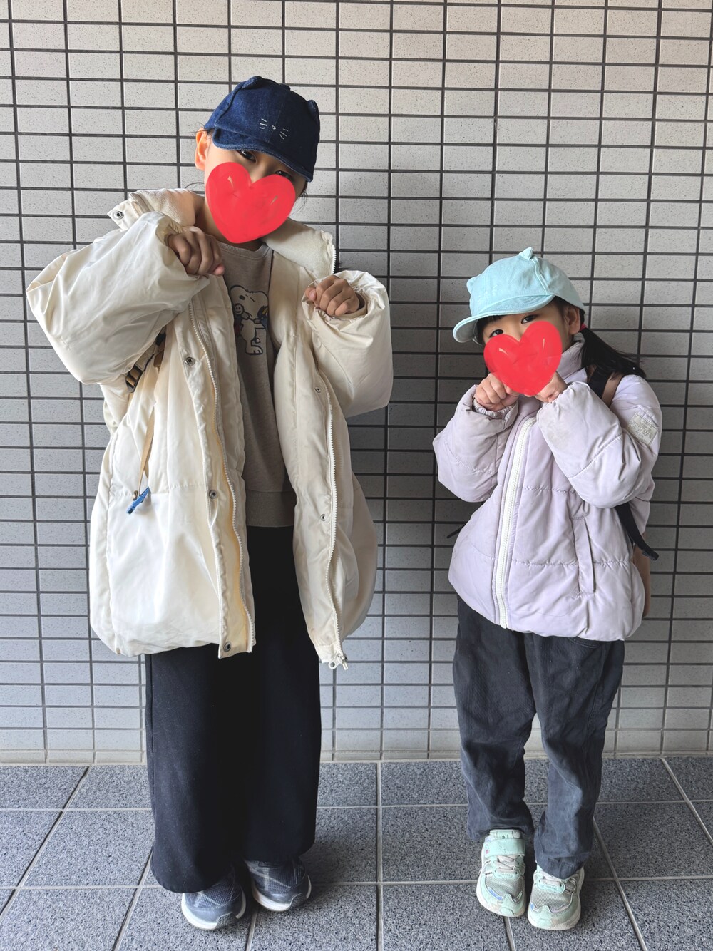 お揃いの猫ちゃん帽子でリンクコーデ😸 9y▶︎130cm、30kg 4y▶︎110cm,、16kg