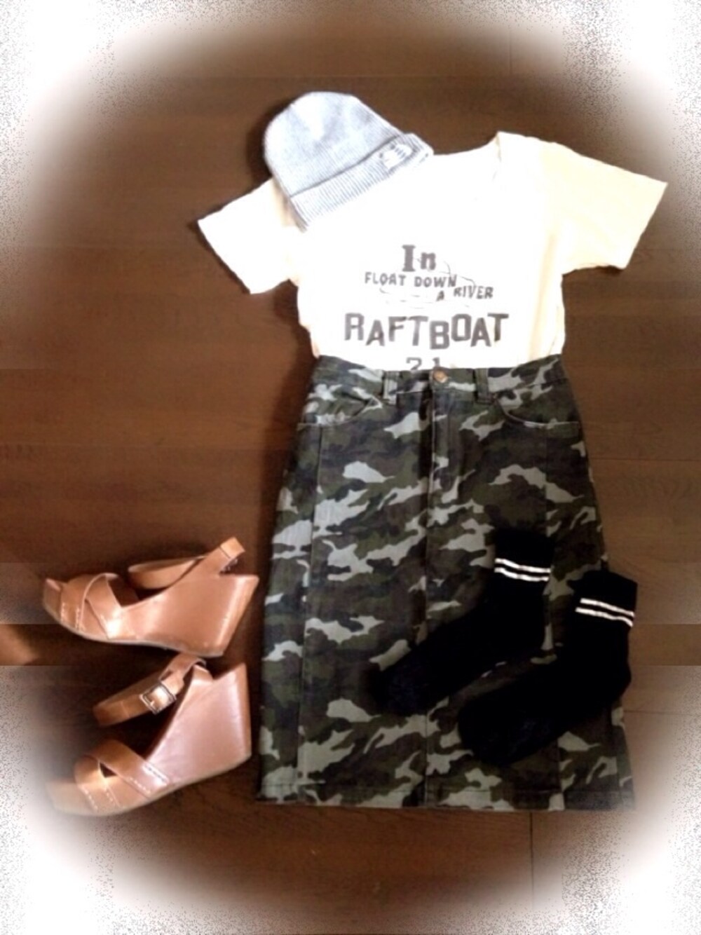 Tシャツ:LOWRYSFARM スカート:used ソックス:靴下屋 カジュアルだけどシルエットで女の子らしく☻ ヒール苦手だけどサンダルだけは10センチ以上がすき♡