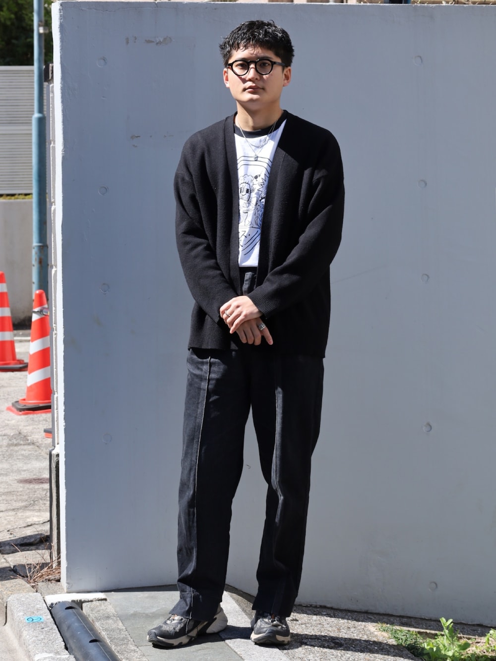 こんにちは、ライオンハートスタッフの佐々木です。 コーディネートをご覧いただきありがとうございます。 -ネックレスチェーン- スモールシルバーチェーンネックレス/ロープ/シルバー925 チェーンが特徴的なデザインなので、これ一つでも活躍しますし、こういったプレートネックレスと重ね着けしてもおしゃれですね! -ネックレス- シャープドッグタグネックレス/シルバー925 小ぶりなドッグタグプレートネックレス。 小さいけど厚みがあり、普通のドッグタグより高級感があります。 ポップなデザインですが燻し加工もなされているので程よいバランス感。 -リング(右手)- タテガミマスターリング/シルバー925 立体感がしっかりありながらも12mmという絶妙な幅感が指なじみの良さを創り出しています。 デザインはシルバーアクセサリー!!って感じで最高ですね。 -リング(左手)- シャープウェーブリング/ブラックジルコニア/シルバー925 個人的にはどこか大阪万博を彷彿とするリング。 遊び心があるリングです。 【STAFF DATA】 年齢:26歳 身長:175cm 首周り:38cm 手首周り:14.8cm