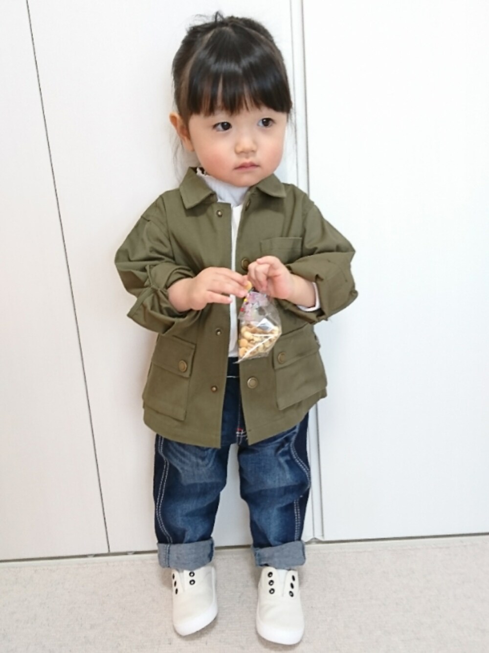 1歳最後のコーデになりました… って言うと、なんかさびしーーー❗ 春コーデです🍀 カーキのジャケットに、 リブカットソー、デニムです👖 ジャケットは張り切って100にしました👍 明日は朝からおでかけなので、 前撮りしたお誕生日picは 夜か朝にアップしたいと思います♥️ 動きまくるので、なかなかうまく撮れませんでしたが😂 いやいや期に見事に足をつっこみ、 好みもだいぶハッキリしてきました。。 言葉も色々言えるようになり、 2語文は少ないですが、 単語はかなり覚えました☺️ 最近は忍者が好きなようです😂 スター・ウォーズのキャラクターも、 一丁前に言えてきて😂、 R2、BB8、3PO、トルーパー、ダーダーダー(ダース・ベイダーのこと)、は見て言えます😂 スター・ウォーズのオープニングテーマと、ダース・ベイダーの曲も歌えるよーに😂 女子らしい趣味good-byeーーー👋 でもいとこから、ソランちゃんをもらったので、食いついてくれますよーに❣️