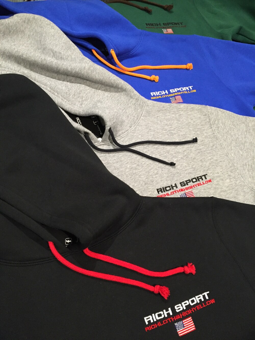 RICHLOTH&HIGHYELLOWから RICH SPORT HOODYが4色入荷🆕🆕 フードセンターにはリフレクタープリント✴︎ 胸には刺繍🇺🇸 ボディは10ozの裏起毛SWEAT🔥 ¥8.500 + tax