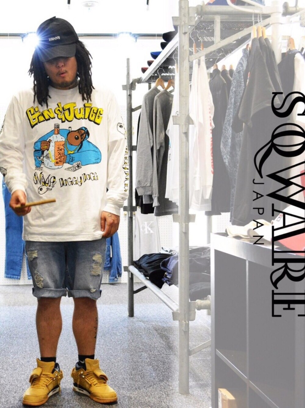 NY買い付け商品入荷しています! スヌープ意識でウィード&アルコール! って訳にもいかないので代わりに葉巻💨💨 DAD HATはNO BRAND アルコールの代わりにHENNYの刺繍がポイントです‼️ TOPSはスヌープオフィシャル! 両袖にもプリントが入ります☆ デニムショーツはリーバイス‼️ 切りっぱなし&ダメージ加工が施されています! 全て日本未発売アイテム‼️‼️ ミュージック、カルチャー、スポーツ、ドラッグ、アルコール、車、バイク、女など、ライフスタイルをそのまま表現出来るファッションを最近は提案したいと思っています☆ 明らかに格好だけの奴って見てすぐ分かるじゃん? YEEZY履いてるけど、KANYEなんて殆ど聴いた事ないとかさ。 靴だけ浮いてるよ? jay'sに関してもだけど、もっとJORDANやBULLSやCHIRAQの事も知ればもっともっと楽しくなるし、わかる奴には分かる的なコーデにも辿り着くと思うんだよなー。 b-boyは1日にしてならず! 偉そうな事言ってすいません! みんな着たいものを好きに着よー\(^o^)/