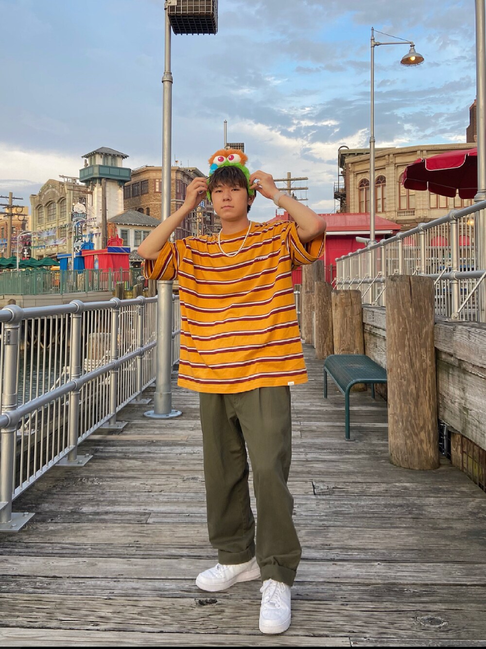 初投稿はUSJに行った時のコーデ☀️ PerushuのボーダーTシャツゆったり着れるし素材もいいし満点です💯 これからゆるく投稿していきます🍀 温かい目で見守ってください🙏🏻