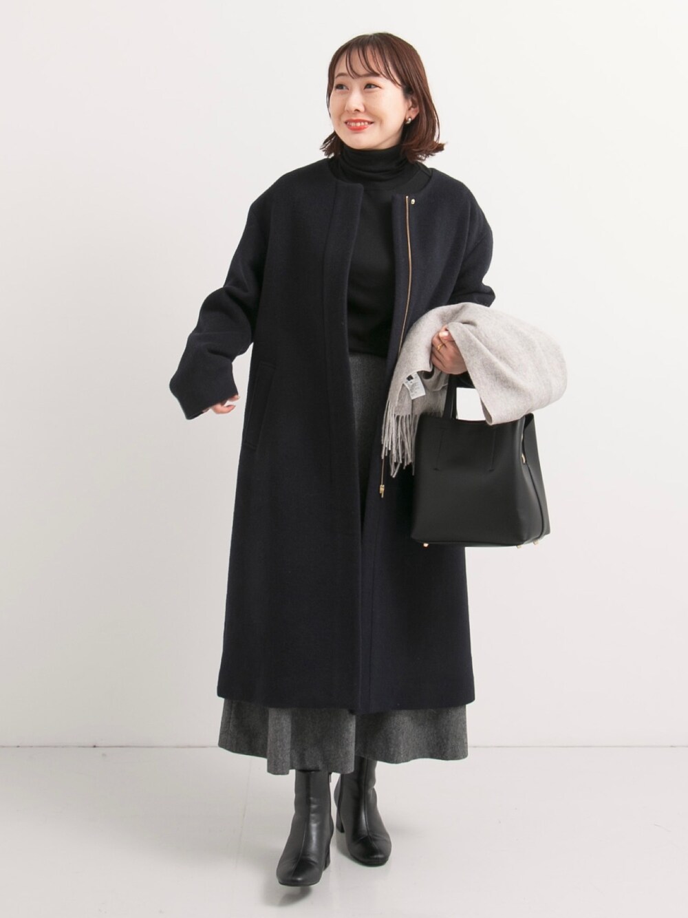 sato(Sonny Label)のノーカラージャケット「ノーカラーウールコート」を使ったコーディネート