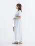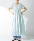 身長:156cm/骨格:ストレート/パーソナルカラー:イエベ春 爽やかなカラーのワンピースは インドコットンでとっても涼しく着られます◎ 胸下の切り替えとVネック、半袖で 骨格ストレートさんにもおすすめです!