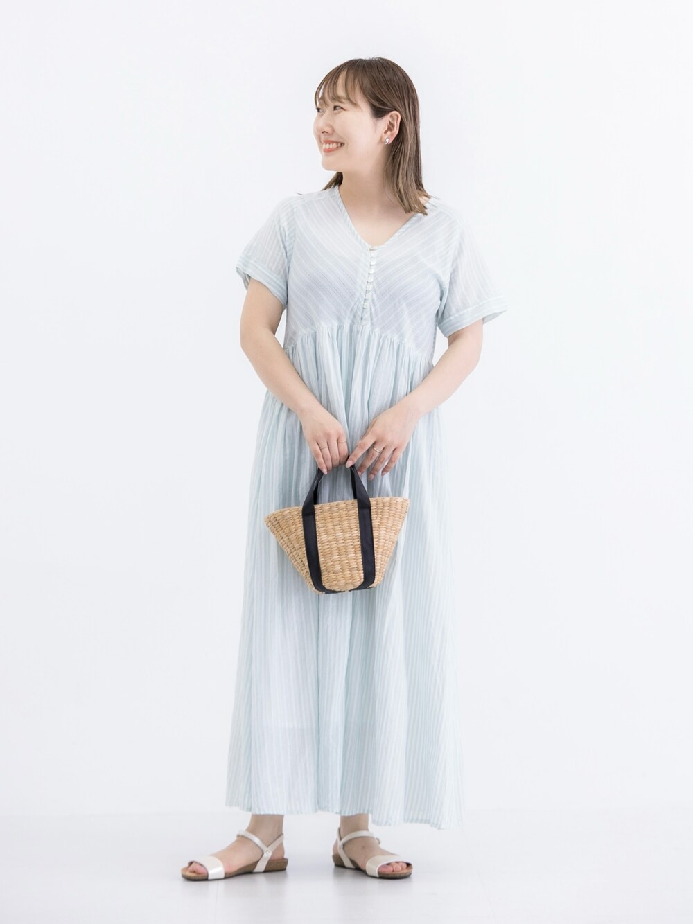 sato(Sonny Label)のかごバッグ「The Bagmati ショルダー付きカゴバッグ」を使ったコーディネート