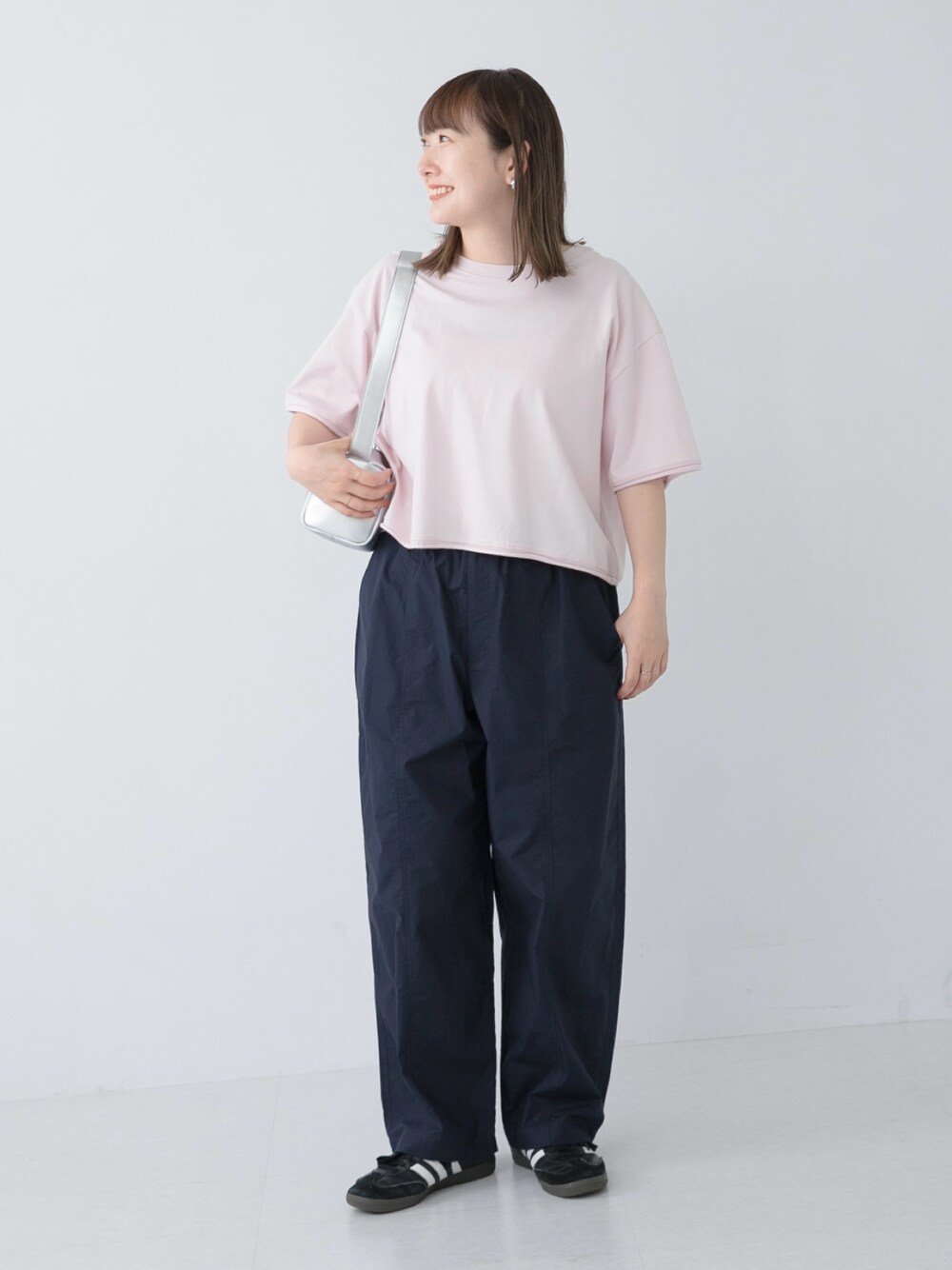 身長:156cm/骨格:ストレート/パーソナルカラー:イエベ春 ショート丈のTシャツはバランスがとりやすく、 低身長さんにもおすすめのアイテムです◎ 袖丈はしっかりあるので、二の腕は気になりません♪ 今回はネイビーのシャカシャカしたパンツと スニーカー合わせでカジュアルに◎ こちらのパンツは近日発売予定なので、 また公開され次第タグ付けします(*^^*) とっても穿きやすくてお気に入りの一着です!