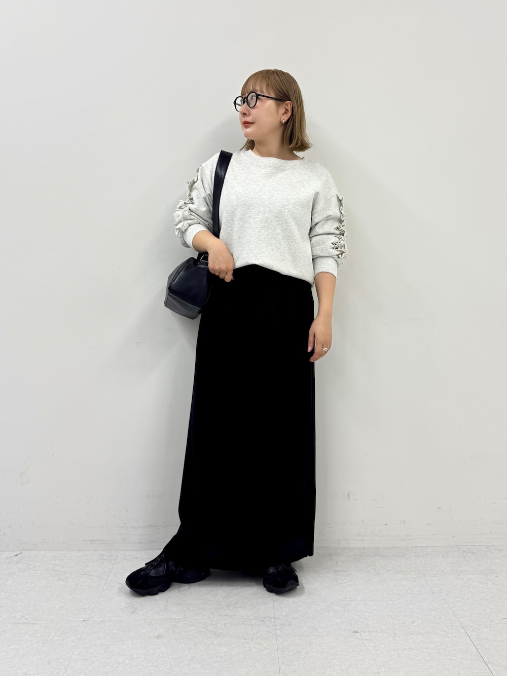 身長:156cm/骨格:ストレート/パーソナルカラー:イエベ春 暖かくなってくるとニット以外のものが着たくなりますが、 まだちょっと寒い時にはスウェットがちょうど良いです◎ フリルスリーブのスウェットは着映え効果も抜群! スウェットのラフさも少し抑えられます♪ スカート合わせでより、きちんと感を意識しました!
