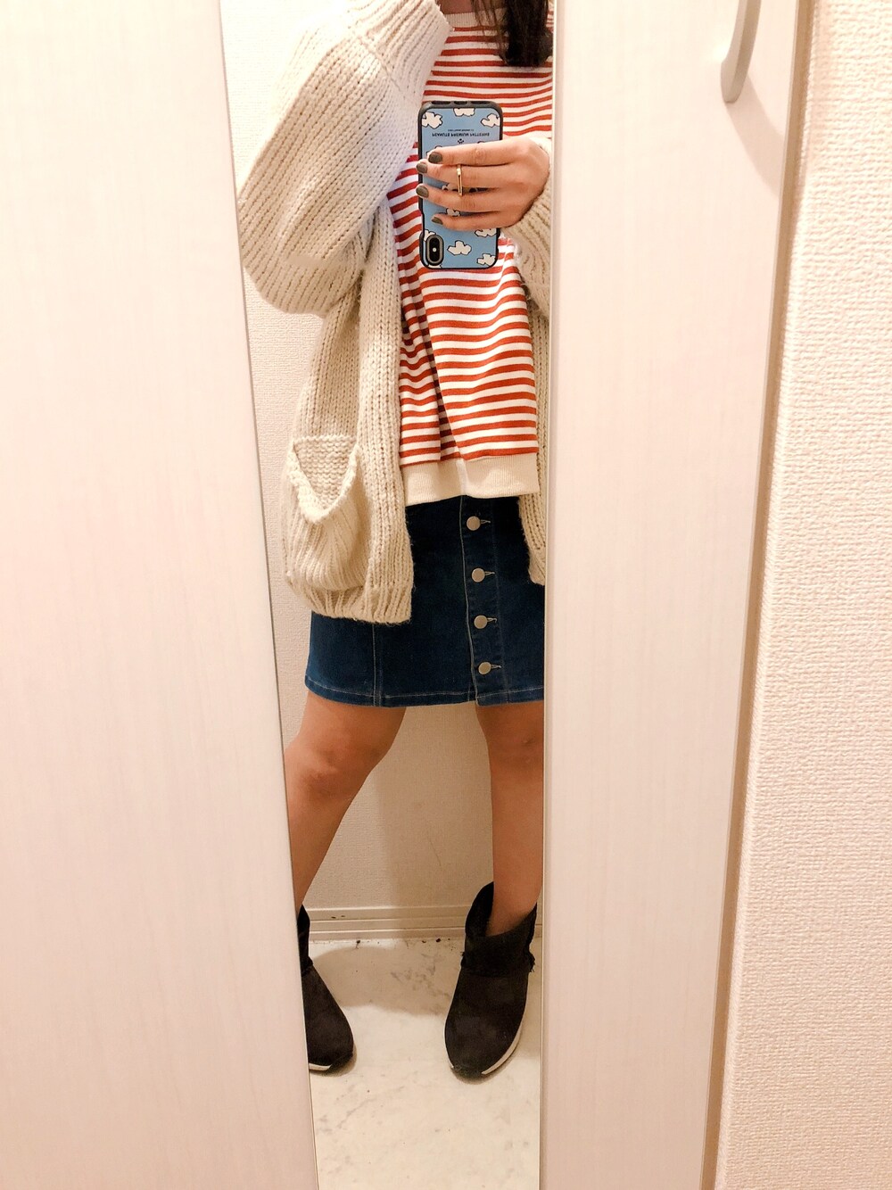 にごうのTシャツ/カットソー「ゆったりルーズオーバーシルエットコットンブレンドバルーンスリーブ後ろ長めボーダープルオーバー」を使ったコーディネート