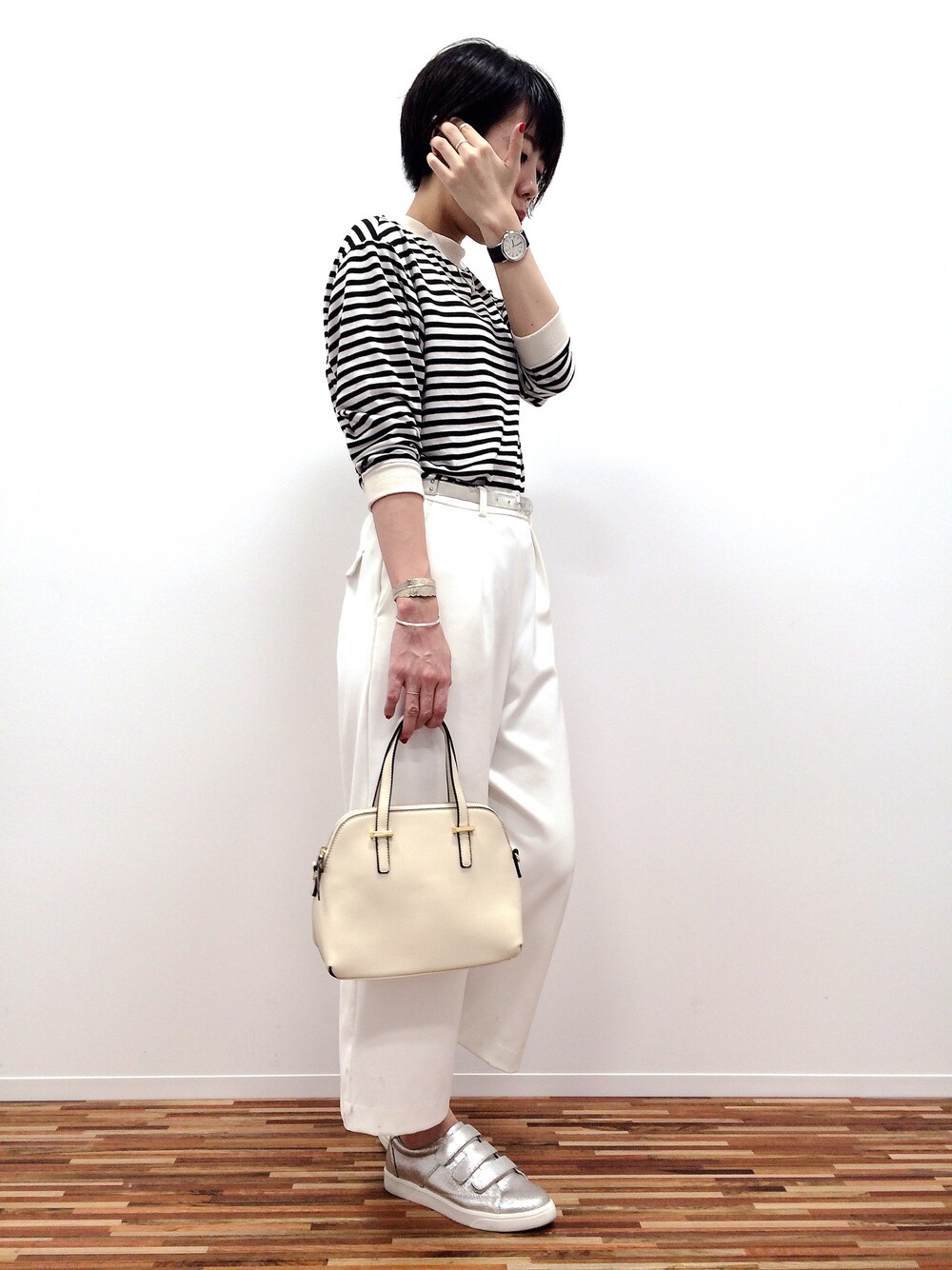 あえての白いバッグにホワイト基調のモノトーンコーデが際立つスタイル♪ これからの時期、この上にトレンチを着るだけでもこなれ感がでそうです。 余計なものはいらない、シンプルに、、 何かのCMで聞いたようなセリフが浮かんだ今日この頃です笑
