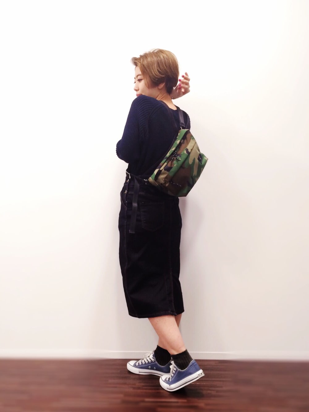 わたしと弟は自分的には似てないと思っていてもかなり似ていると周りからは必ず言われます。 確かに教育実習のとき、弟の後輩達のクラス担当で入った瞬間に大爆笑されたこともあったな、、、(出オチ) ただ、2人でいた時に唯一わたしに「彼女さんですか?」と聞いてきたあの古着屋の店員さん、、、心の中で(えっ、こんなに似てるのに、、、)と思った、、、 THE 矛盾 はっきりとしたカモフラ柄はメンズライクな印象に。 これをこんなデニムスカートと合わせてミックススタイルがラフなスタイルをこなれて見せてくれますね♪ ベルトもこだわりデザインでおしゃれです☺︎