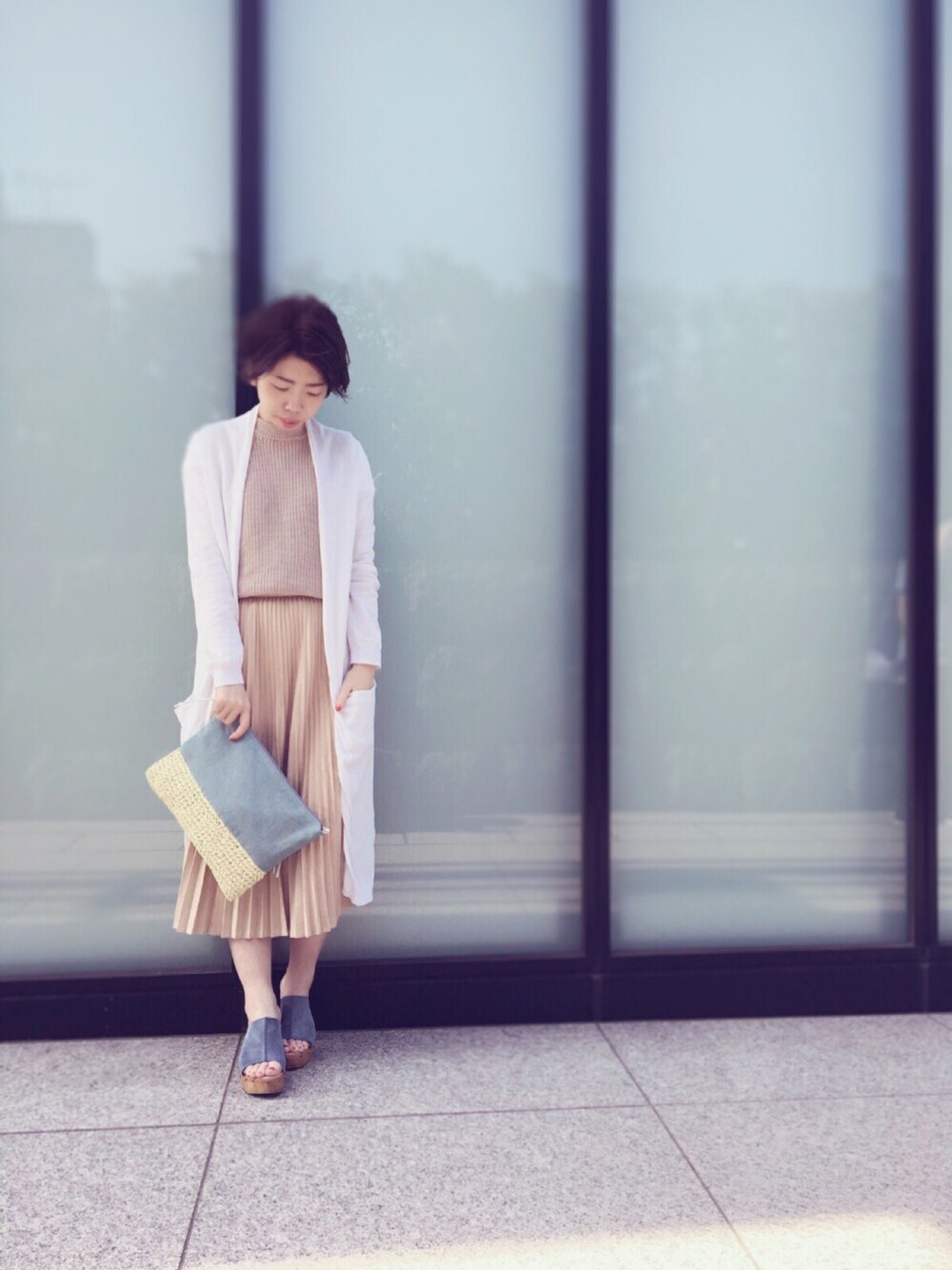 こんばんは☺︎ 今日は暖かくてお出かけ日和でしたね〜 鯉のぼりの画像をSNSなどで皆様がUPしてるのをちらほら見て季節を感じてほっこりしてます♪ そろそろアウターなしでさらっと出かけたいなということで、爽やかな素材、カラーのクラッチをやわらかいトーンのコーデと合わせてめずらしくフェミニンなスタイリングにしてみました✨(でもドキドキ、、、)