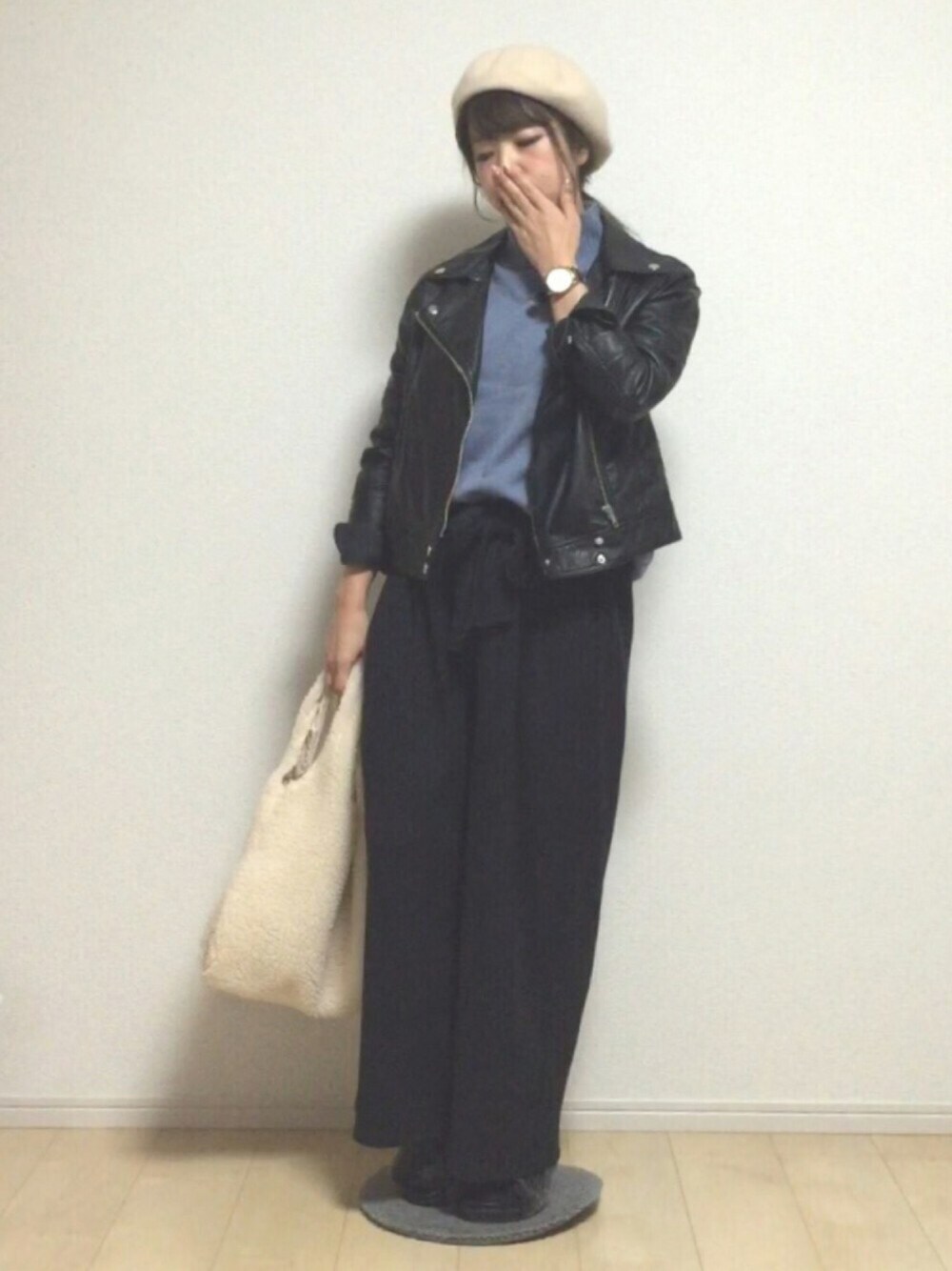 帽子とバッグと腕時計はのぞいて オールGU🙌 意識したわけじゃないけど 着たいもの合わせたらこうなりました😁 ライダース今年まで全然着てなかったけど 意外と合わせやすくって活躍中✨ 今からだいっ好物の牡蠣を食べてきまーす😚💘