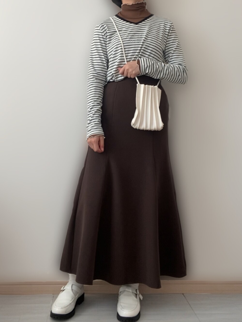 ブラウンのシアーハイネックシャツがかわいい🤍✨