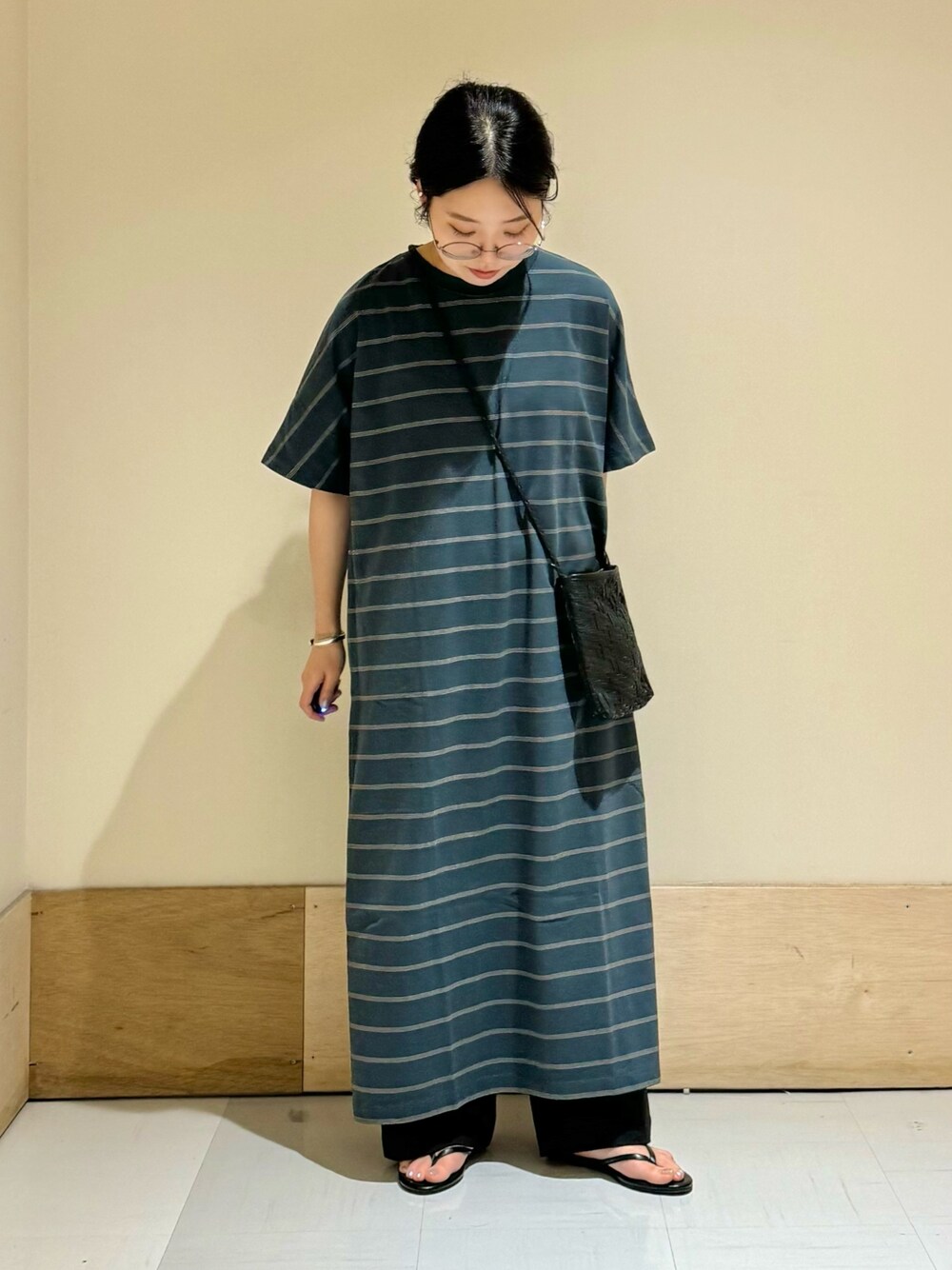 キザキ アケミ(DOORS マルイ吉祥寺)のワンピース「ネイチャーボーダーショートスリーブワンピース」を使ったコーディネート