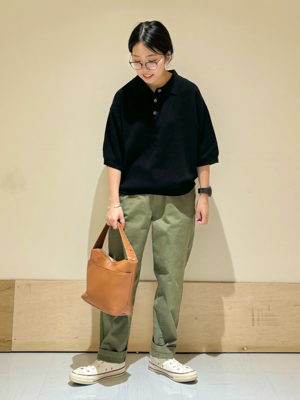 🥑🍂スタイリング紹介🍂🥑 ニットポロかわいいです。 さらっとしてるので 今からでも着用できます◎ カーキ色と合わせてグッと秋の装いです! Instagram📷(@kzkakm)