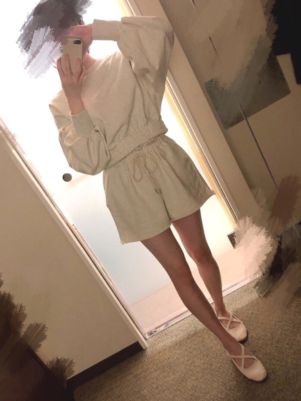 スウェットセットアップ🥰 トップスが短めの丈だからすっきりして見えてお気に入り~!♥ ▶Seemi. byNICECLAUP ロゴ刺繍スウェットセットアップ オートミール 上下です🥺🌷