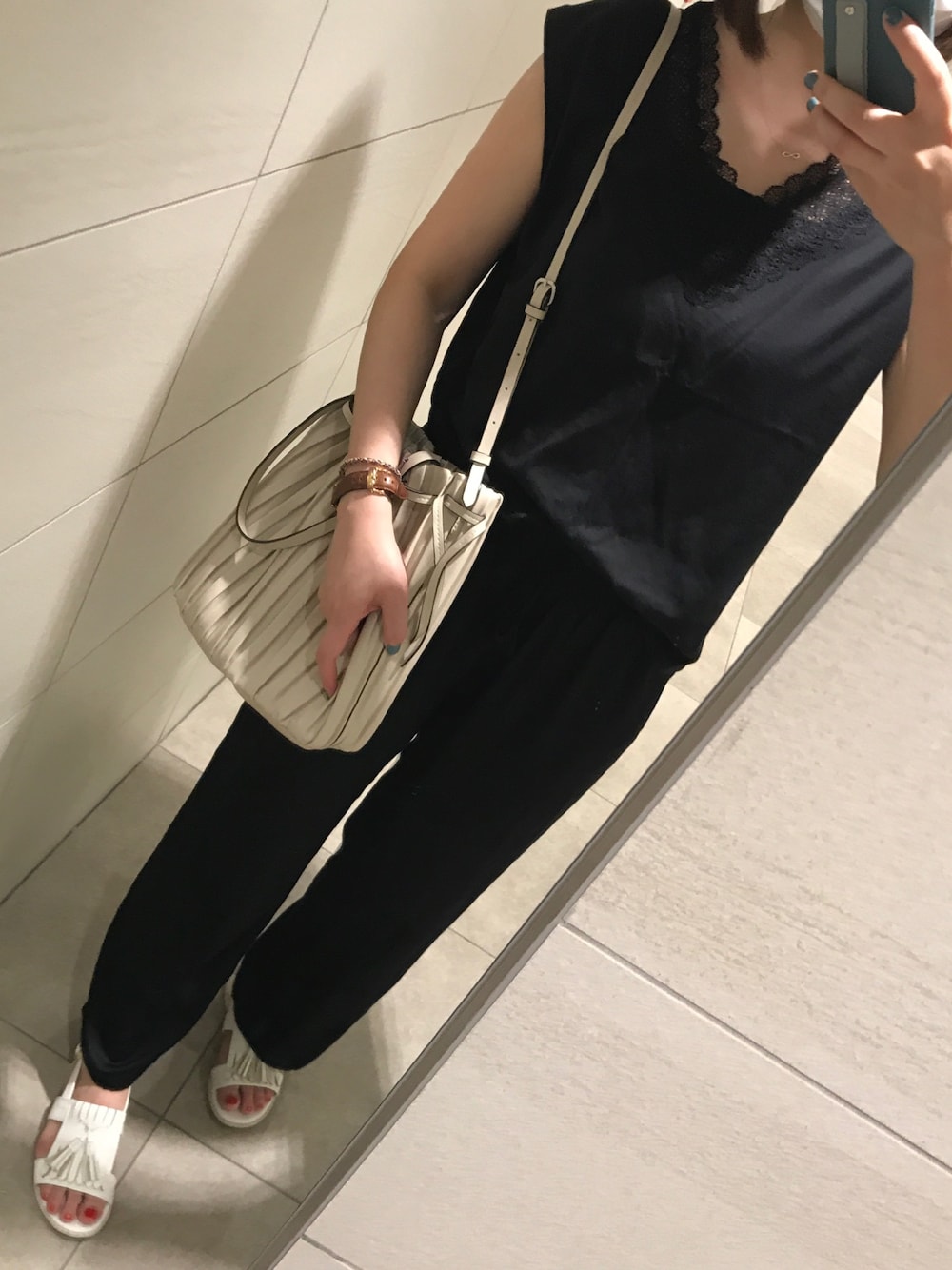 ユニクロのサテンドレープストリートパンツはとても履き心地良くて普段着として使ってます😄