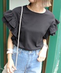 mliastaffのTシャツ/カットソー「袖異素材フリルトップス」を使ったコーディネート