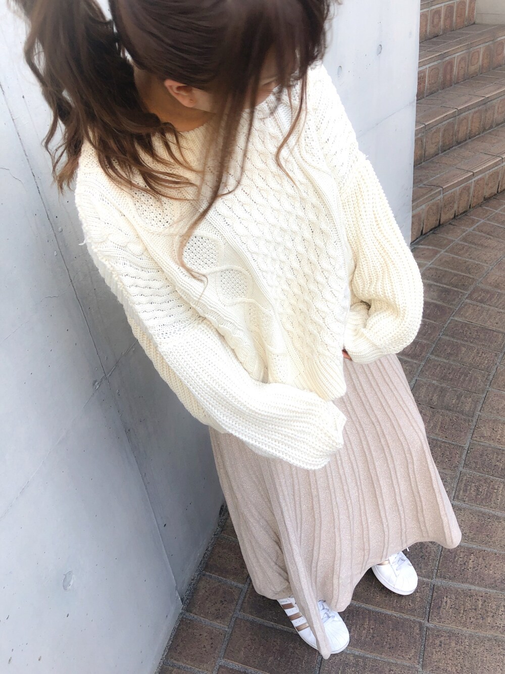 * 𝙠𝙧𝙣 *のニット/セーター「ケーブルワイドニットプルオーバー」を使ったコーディネート