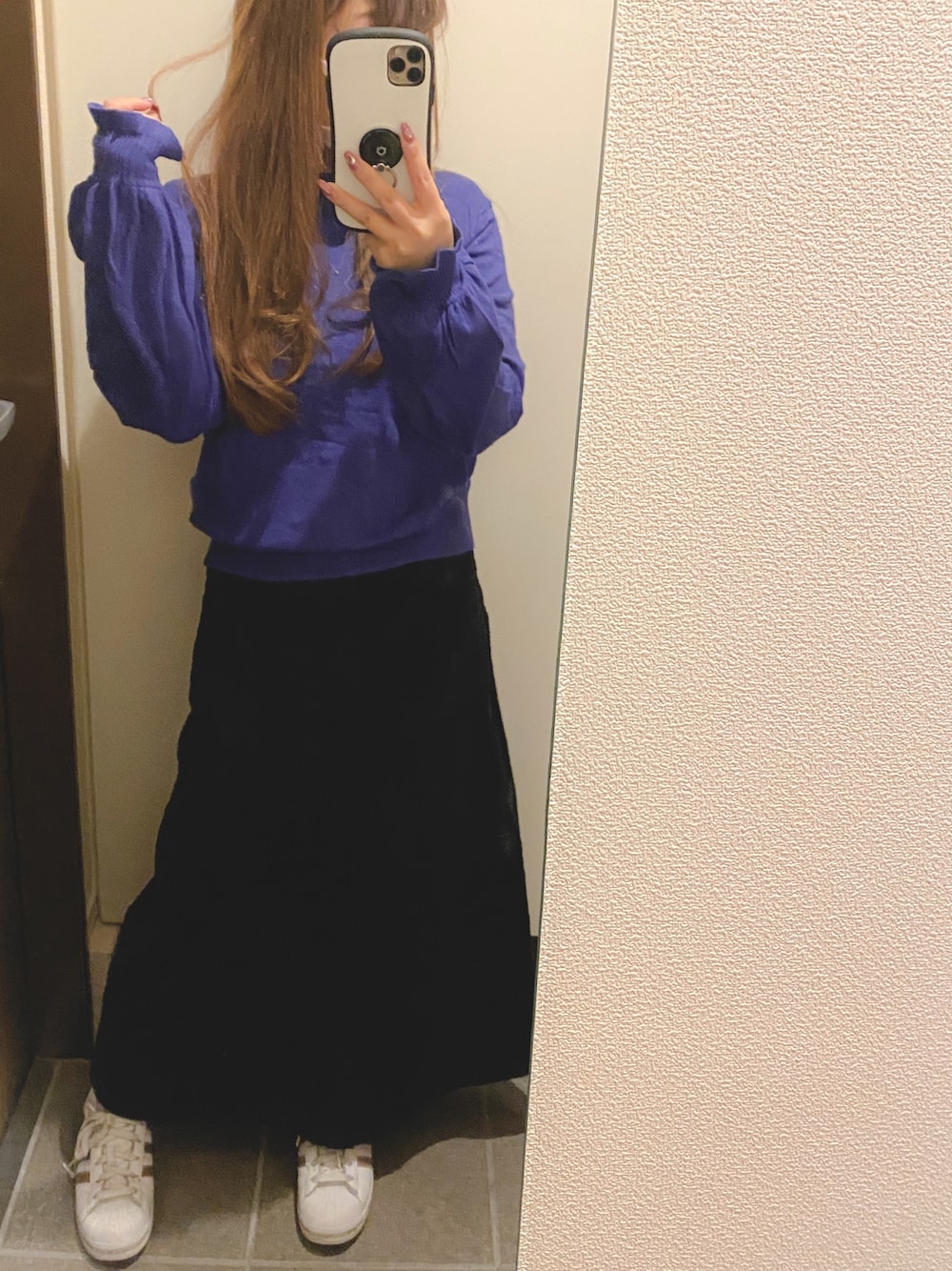 パープルが着たくなったのです🥰 コーデュロイスカート着がち🙆♀️🙆♀️🙆♀️ これから寒くなるのかなー🤔🤔このままあったかいのかなー🤔🤔
