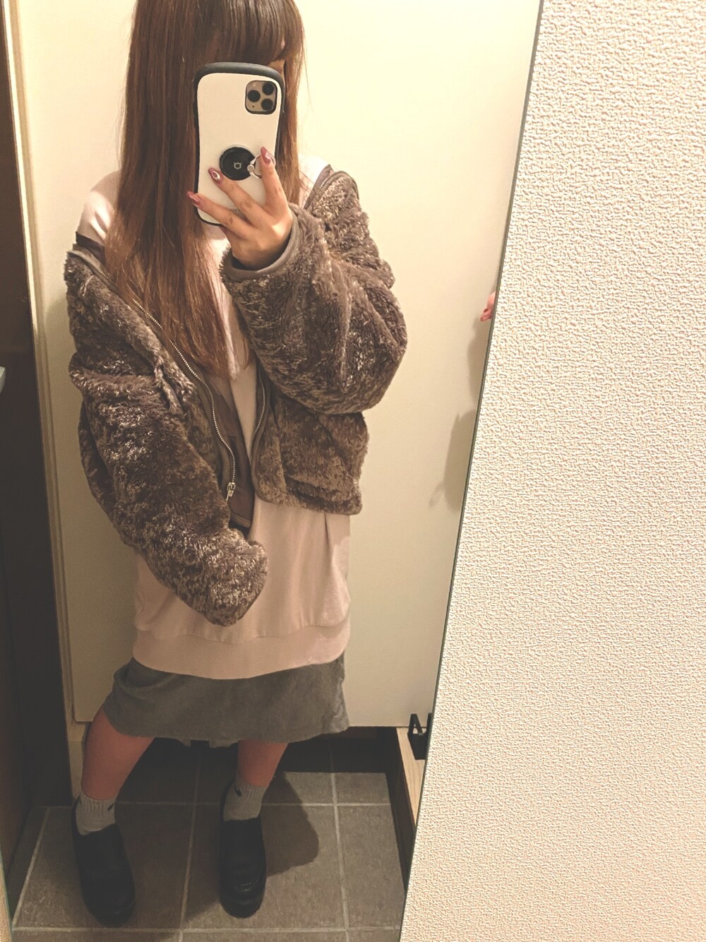 わたしもブラウンチャレンジする! 普通のボアより繊細なボアなのです☺️☺️ふあふあです😳 ピンクのスウェットはゆったりサイズ♡ スカートは昔買ってたやつ😂
