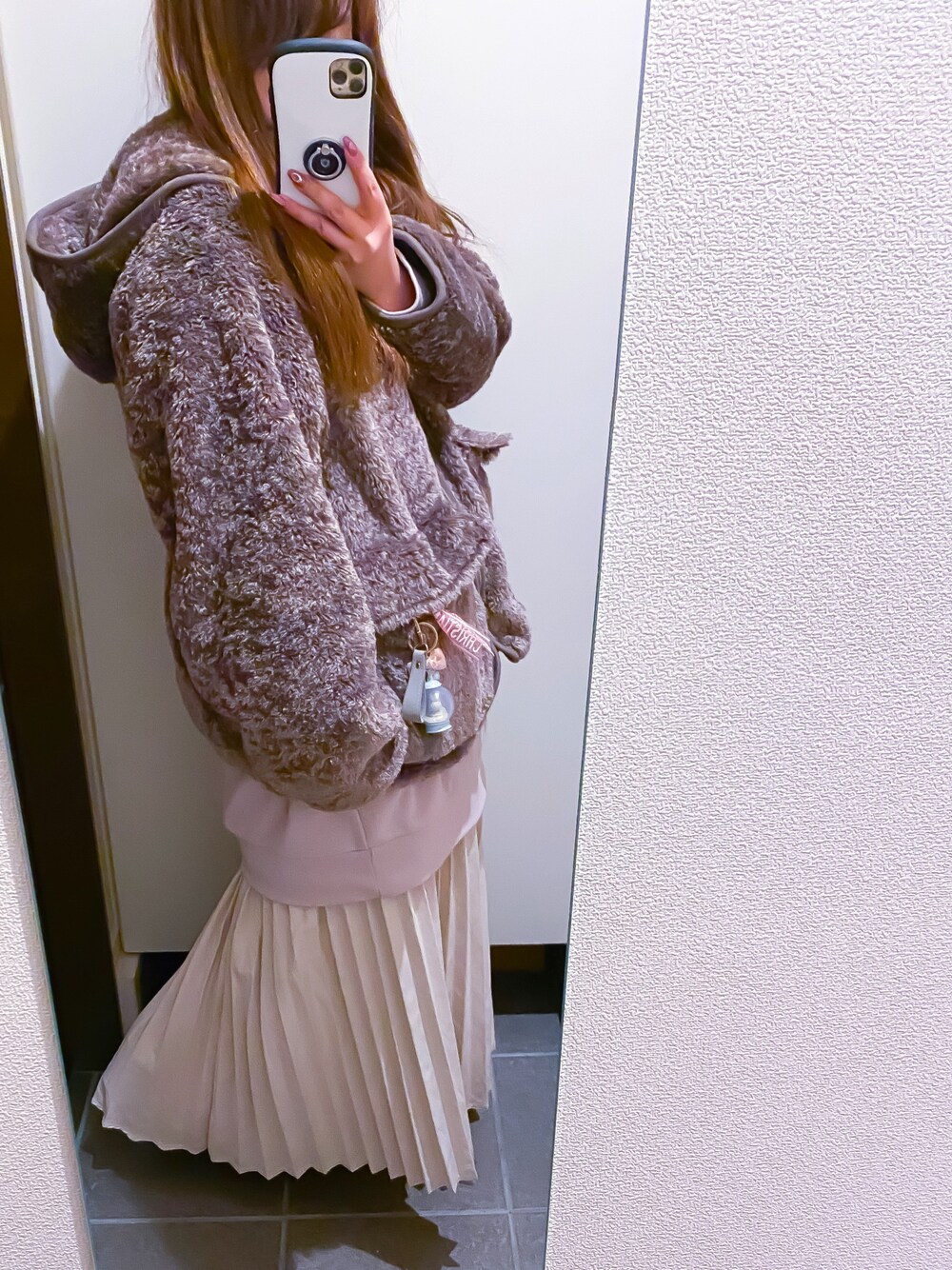 寒すぎてスカート変えたよ😭😭 こっちの方がしっくりきました🙆♀️🙆♀️🙆♀️🙆♀️ ふわふわもこもこアウターで寒さは乗り切った💪🏻