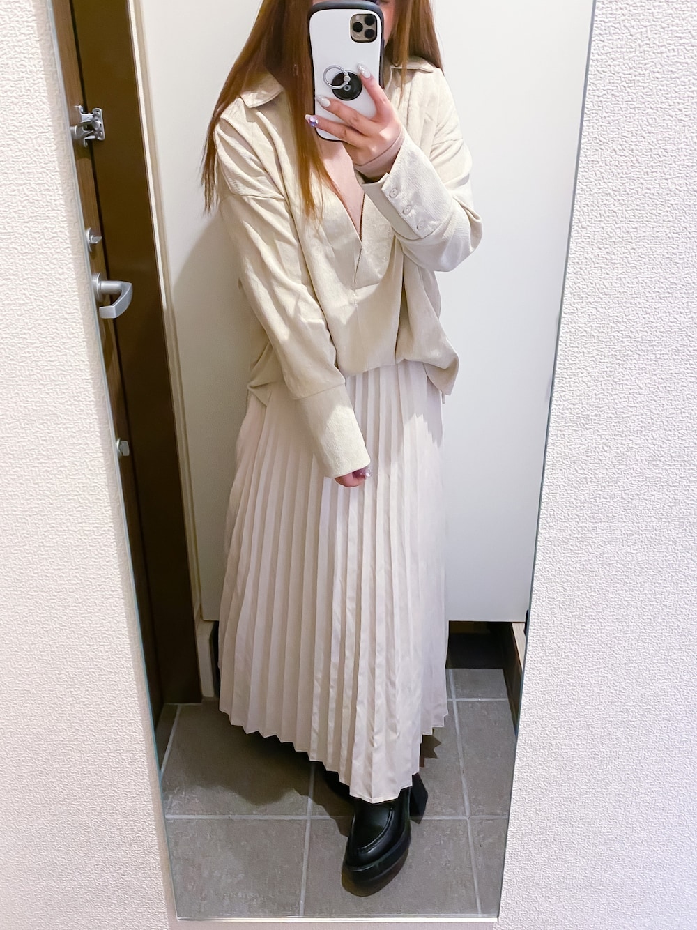 見せかけシャツ! これなにが良いって一枚で重ね着してるように見えること! ら、楽チン😳 スカート合わせも良いしスキニー合わせも良い! 今日はスカート合わせにしました👌👌 ワントーンで揃えるとこなれた感じになるね!