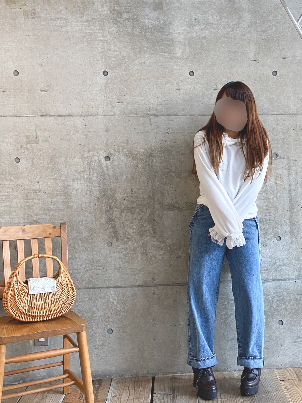 * 𝙠𝙧𝙣 *のパーカー「ミニ裏毛取外レース付きパーカー」を使ったコーディネート