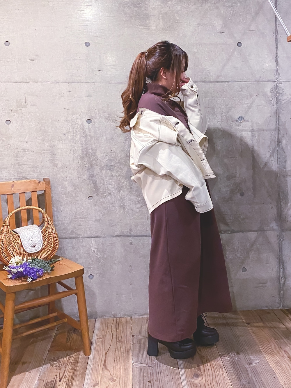 * 𝙠𝙧𝙣 *のワンピース「バックスリットハイネックドロショワンピース」を使ったコーディネート