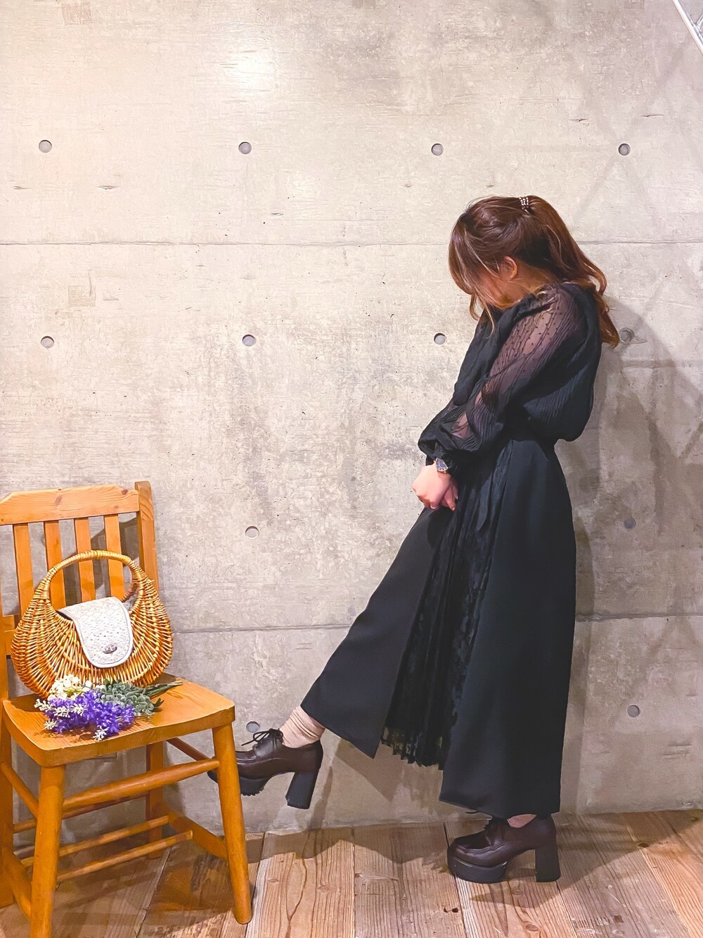 今晩は☺️ 今日は昨日と打って変わってさむかったー🙄🙄💦 でも日差しは春🌸 今日の投稿はブラックコーデです🙆♀️🙆♀️ 真っ黒の中にこの透け感がイイよね❗️ たくさんのイイねとお気に入りありがとうございます♡