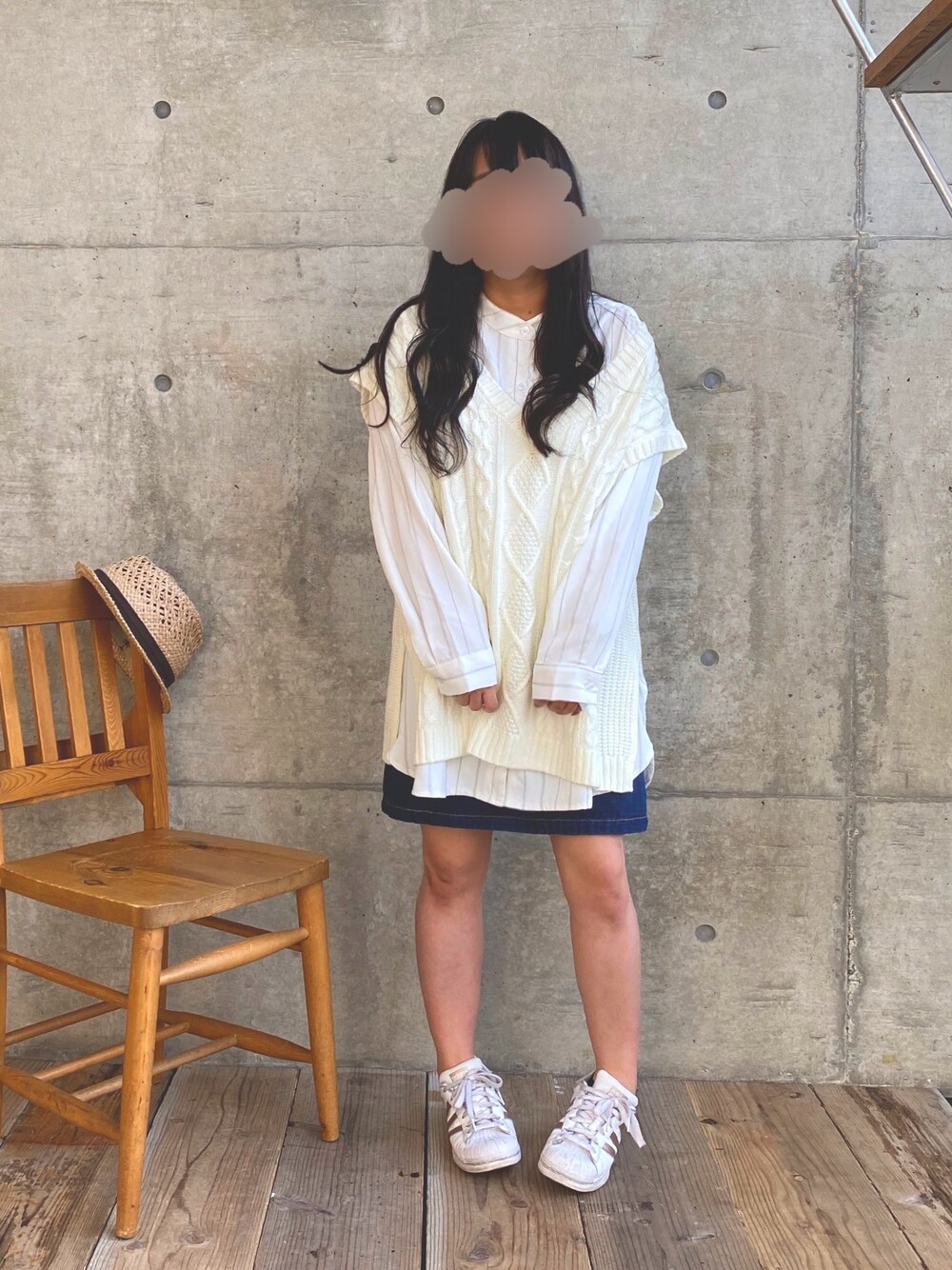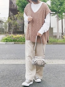 * 𝙠𝙧𝙣 *のベスト「ケーブルニットベスト」を使ったコーディネート