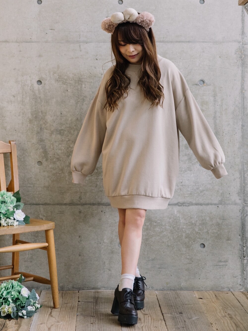 * 𝙠𝙧𝙣 *のスウェット「ビッグシルエットトレーナー」を使ったコーディネート