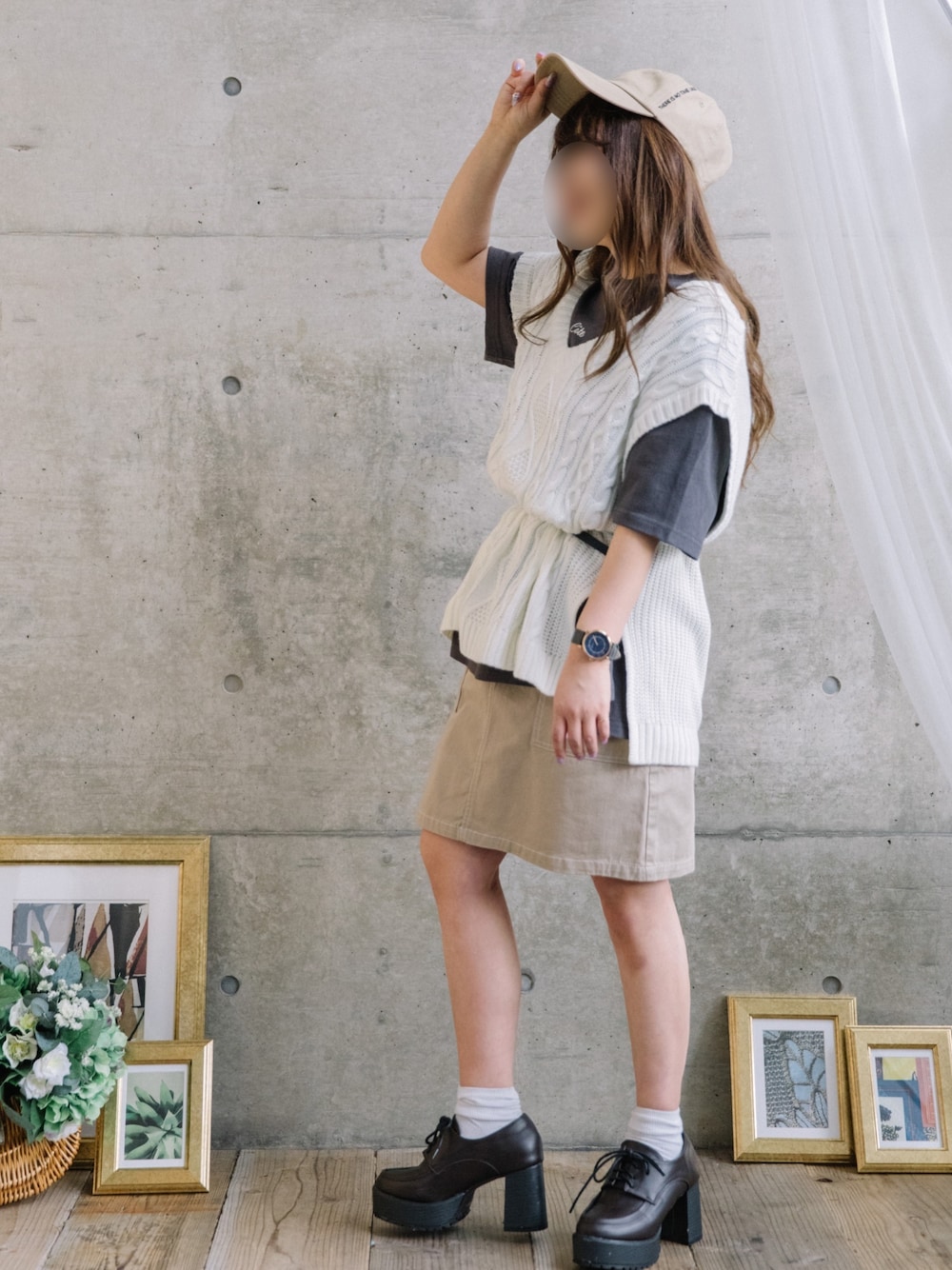 こんにちは! 今日は天気が良いですね☺️ おうちコーデ撮影しようと思ってたらこんな時間になりました🙄笑 ニットベストは相変わらず大人気☺️💕 ホワイトカラーも推し🙆♀️ これから真白もいいですよね✨ 台形スカートはガチャベルト付きです🙆♀️めちゃプチプラ❗️ 今日は1000円オフクーポンの日💕